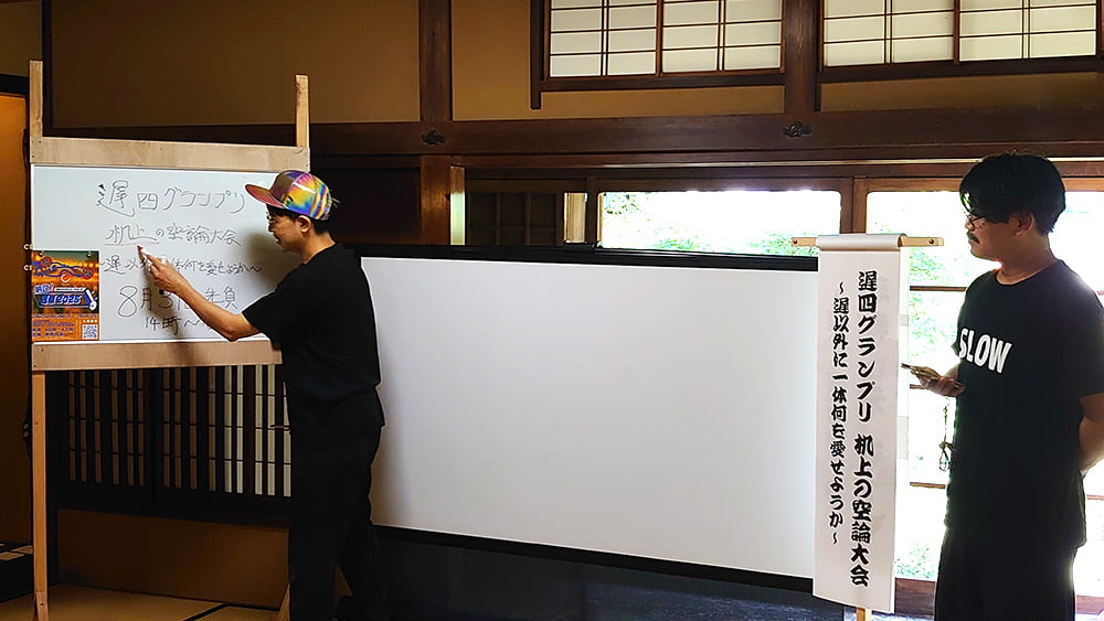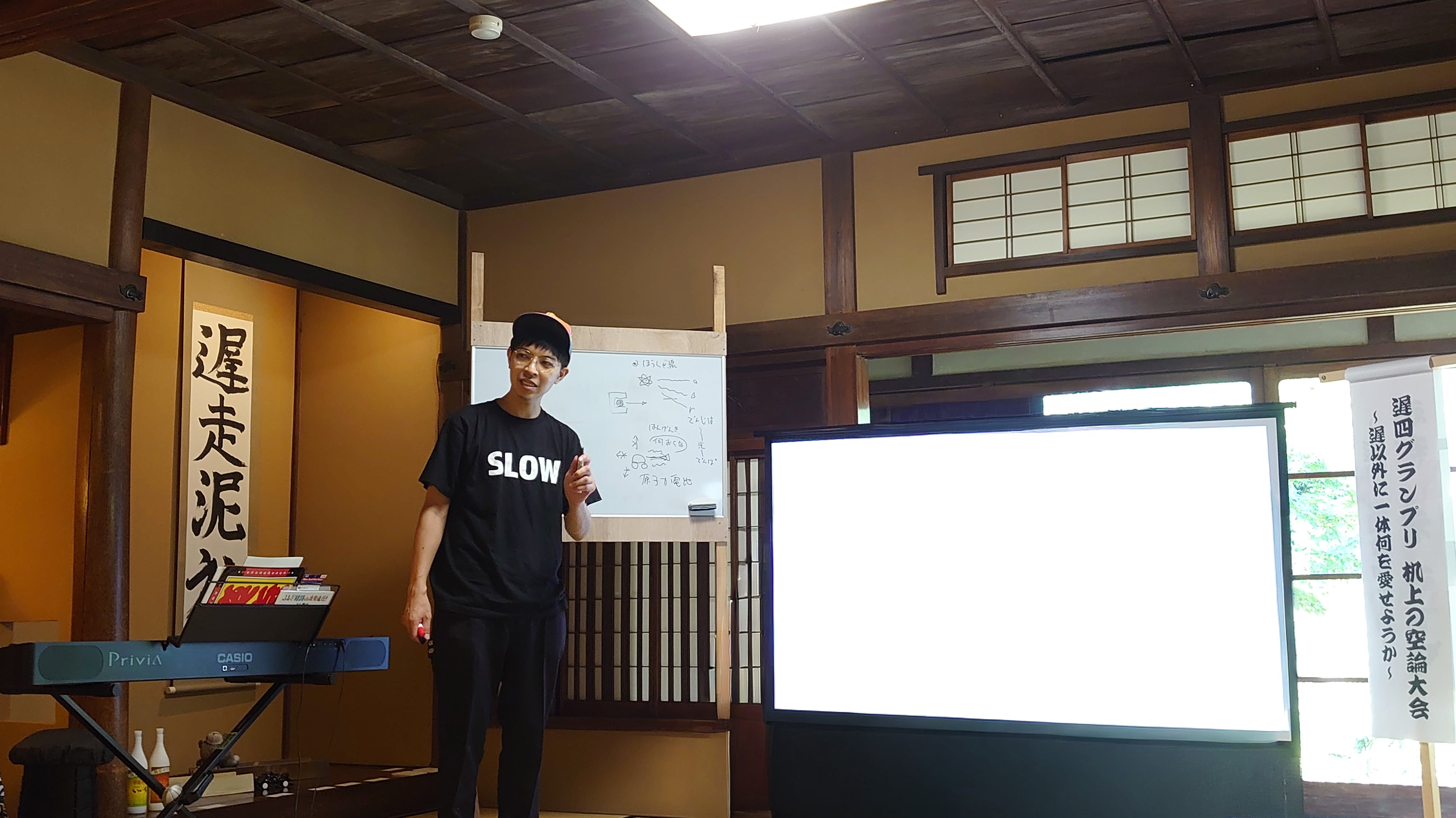 14時からはこの日のメインイベントでもある「遅四グランプリ 机上の空論大会〜遅以外に一体何を愛せようか〜」が開催。が、開始時間になってもなかなか参加者が集まりません。ですがそこは『遅』をテーマのイベントということで、参加者が揃うまでまったり待つことに。こういった雰囲気も遅四ならではといったところですね。それから40分ほどで参加者が揃い大会がスタートしました。