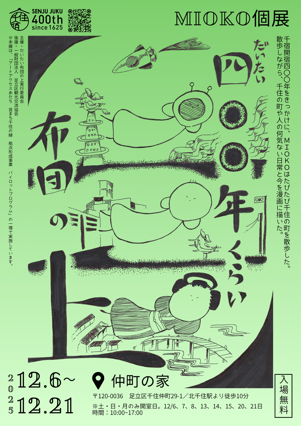 だいたい布団の上実行委員会 事務局※本展覧会は、「アートアクセスあだち 音まち千住の縁 拠点形成事業 パイロットプログラム」の一環で実施しています。