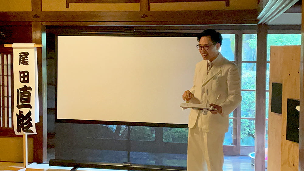 遅四グランプリの後は会場のセッティング変更が行われ、大きなスクリーンが登場。尾田直彪(おだたかとら)さんによる『遅活弁』のはじまりです。